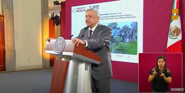 | ▲ 7월 20일 정례 기자 간담회에서 대통령 AMLO가 7월 17일 CJNG에 의해 배포된 동영상에 대해 설명하고 있다. |