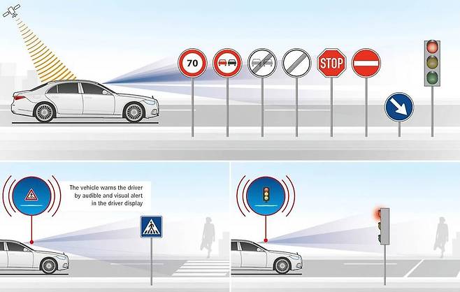 A. 드라이빙 어시스트에 새롭게 도입된 사항 중에는 먼저 독일의 경우 교통체증 상황에서 긴급차량을 위해 도로 한쪽으로 자동으로 비켜주는 기능이 포함됐다. 또 하나 혁신적 내용 중에는 기존 엑티브 브레이크 어시스트 중 새롭게 차량 충돌을 미리 경보해 주는 기능이 추가됐다. 또 드라이빙 어시스트 상황에서 스티어링 휠에 운전자가 손을 대고 있는지 인식하는 기능이 보다 향상됐다.