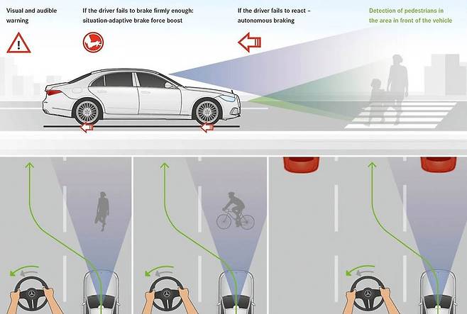 Q. 벤츠의 능동 안전 및 인텔리전트 드라이브와 타 브랜드 간 가장 큰 차이점은 무엇인가?