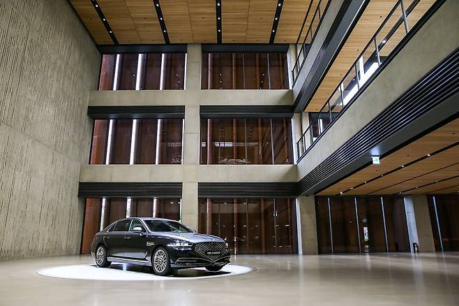 물론 주인공은 차다. 1층 특별 전시 공간에는 1층부터 3층까지 뚫린 큰 공간에 단지 ‘G90 스페셜 에디션 스타더스트’ 한 대만을 전시한다. 전시 차종은 상황에 따라 탄력적으로 바꿔갈 계획이다.