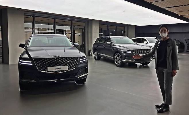 2층부터 4층까지는 층별로 2층 G70 7대, 3층 G80 7대, 4층 GV80 6대 및 G90 3대를 전시해, 모든 차종을 다채롭게 살펴볼 수 있다. 특히 각 층에는 실내 내장재와 차체 색깔을 종류별로 직접 만져볼 수 있도록 실제 문짝을 일렬로 전시해 놓았다.