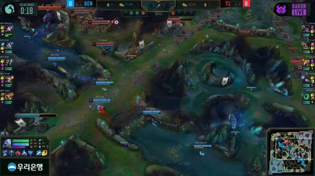 당시에 훨씬 더 강한 화력을 보유했던 젠지다. 이들은 왜 한타를 열지 못하고 절반 승률의 강타 싸움을 해야 했을까. 게임을 다시 보면 바다 드래곤을 사냥하던 ‘라스칼’ 김광희(케넨)가 제때 내셔 남작 둥지 쪽으로 순간이동할 수 없었다는 걸 알 수 있다.