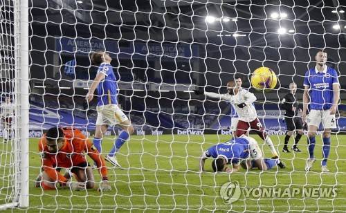epa08910298 Alexandre Lacazette (C-back) of Arsenal celebrates after scoring opening goal against goalkepeer Robert Sanchez (L) of Brighton during the English Premier League soccer match between Brighton & Hove Albion FC and Arsenal London in Brighton, Britain, 29 December 2020. EPA/Frank Augstein / POOL EDITORIAL USE ONLY. No use with unauthorized audio, video, data, fixture lists, club/league logos or 'live' services. Online in-match use limited to 120 images, no video emulation. No use in betting, games or single club/league/player publications.