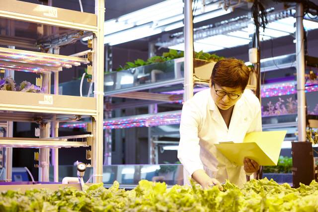 또 다른 재배실에서는 로봇이 카메라로 파종한 식물 잎의 면적을 찍어 불량을 골라내는 식으로 수율 향상 시험이 진행되고 있었다. 양중석 스마트팜융합연구센터장은 “1만2,000~1만3,000개의 씨앗을 파종해 2,000~3,000개의 불량을 추려내고 있는데, 불량 비율을 10%선까지만 낮춰도 식물공장의 효율성을 좀 더 높일 수 있다”고 설명했다.