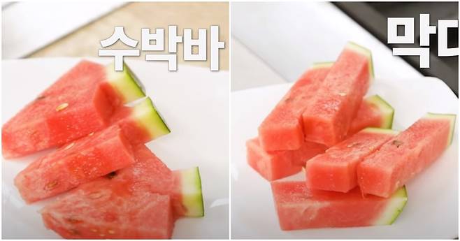 이렇게 써는 이유는 '수박바'를 만들 때 쓰는 수박 썰기 방법이다.