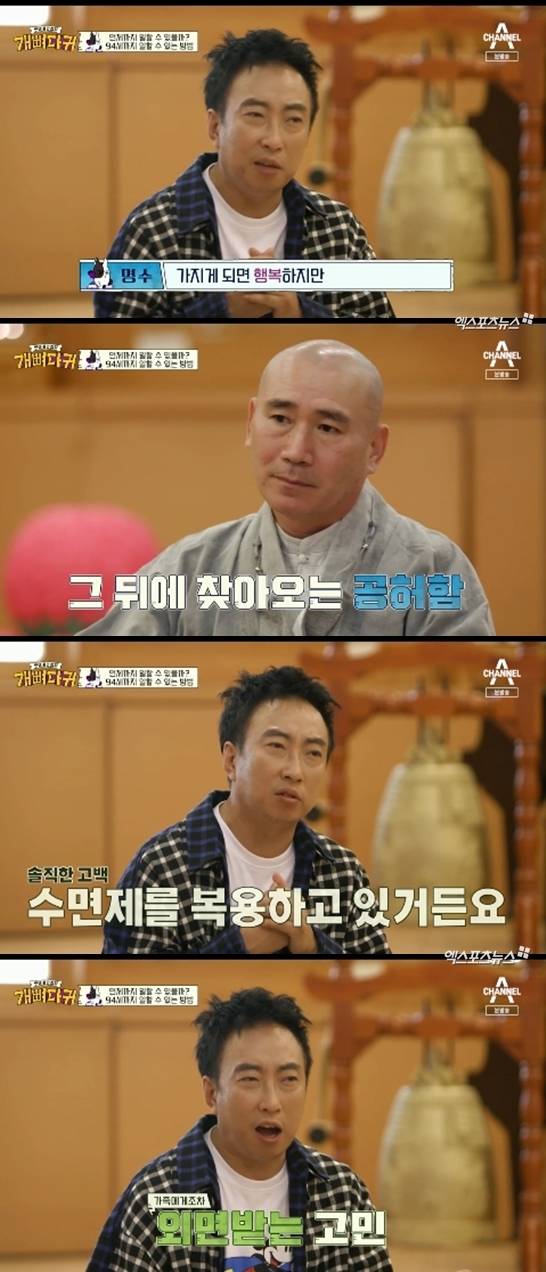 15일 방송된 채널A '개뼈다귀'에서 박명수는 일과 행복에 대한 고민을 안고 마가 스님을 찾았다.