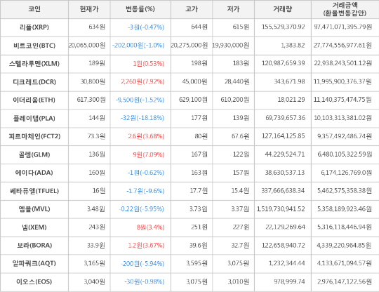 한편 거래금액 기준으로는 리플, 비트코인, 스텔라루멘 순으로 가장 활발한 거래를 보이고 있다.