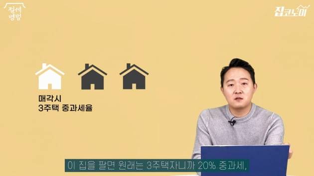 그래서 만약 내가 1가구 3주택자다. 이 집을 팔면 원래는 3주택자니까 20% 중과세, 2021년 6월 1일 이후로는 30%가 중과세 됩니다. 나머지 두 채를 임대주택으로 등록한다든지, 지방의 저가주택이라면 이 서울에 있는 집도 중과세가 되지 않는 거죠.