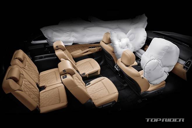 싼타페 부분변경의 에어백은 6개다. 1열 어드밴스드 에어백, 앞좌석 사이드, 커튼 등으로 구성됐다. 신형 쏘렌토의 에어백은 8개다. 싼타페와 비교해 운전석 무릎과 1열 센터 사이드 에어백이 추가됐다. 다만 싼타페에는 1열 하체 상해저감 시트벨트가 제공된다.