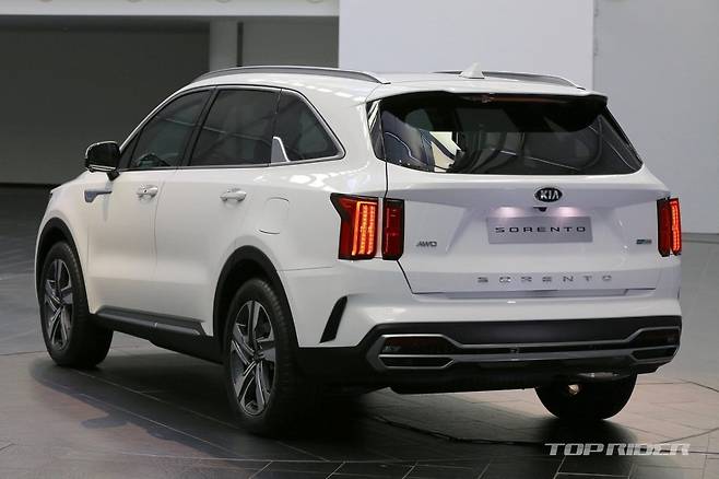 신형 싼타페는 부분변경으로는 이례적으로 3세대 신규 플랫폼이 적용됐다. 신형 쏘렌토에도 적용된 신규 플랫폼은 저중심, 경량화는 물론 친환경 파워트레인까지 대응한다. 신형 쏘렌토의 차체는 전장 4810mm, 전폭 1900mm, 전고 1700mm, 휠베이스 2815mm다.