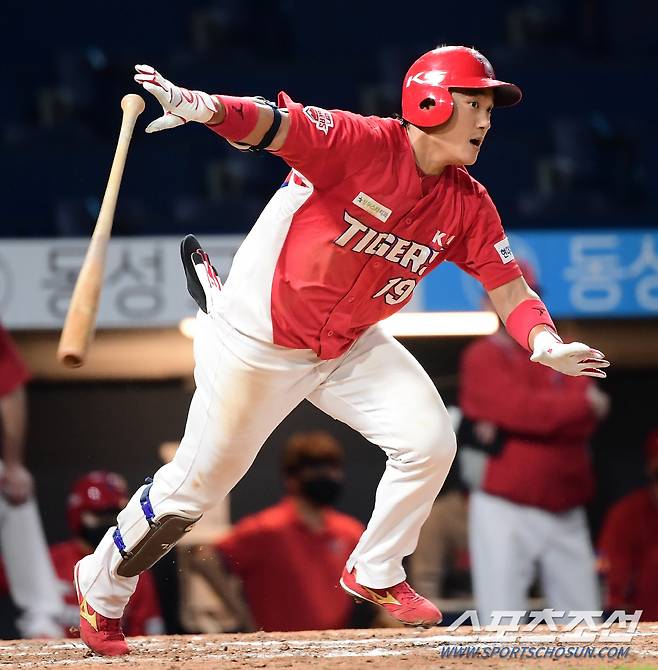 KIA 타이거즈와 NC 다이노스의 2020 KBO 리그 경기가 12일 창원NC파크에서 열렸다. 7회초 2사 2루, KIA 김태진이 1타점 적시타를 치고 있다. 창원=허상욱 기자 wook@sportschosun.com/2020.09.12/