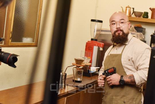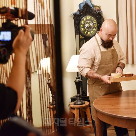 유튜브 '가짜사나이'에 출연한 야전삽 짱재(본명 장재성)가 최근 서울시 관악구 포말커피에서 진행된 남성 매거진 MAXIM(맥심)의 11월호 화보 촬영현장에서 포즈를 취하고 있다.
