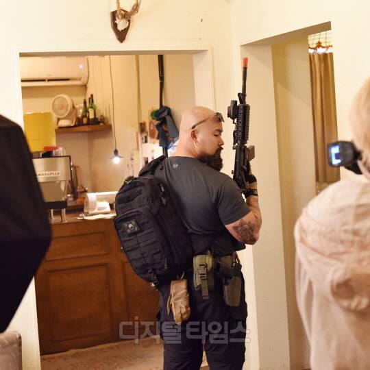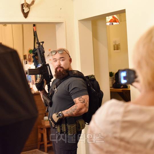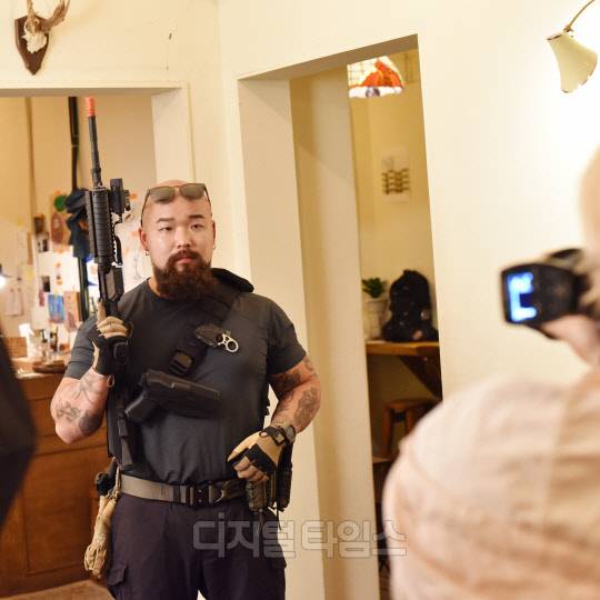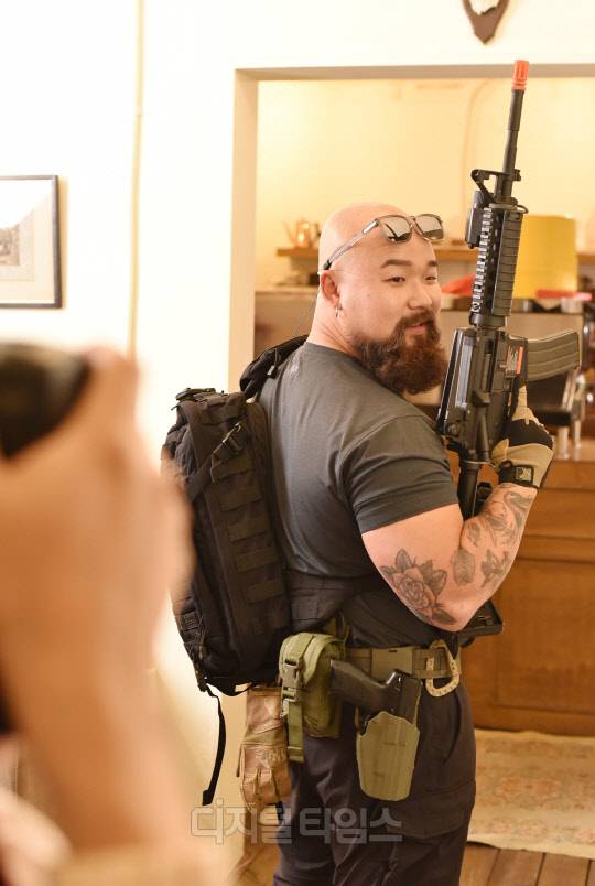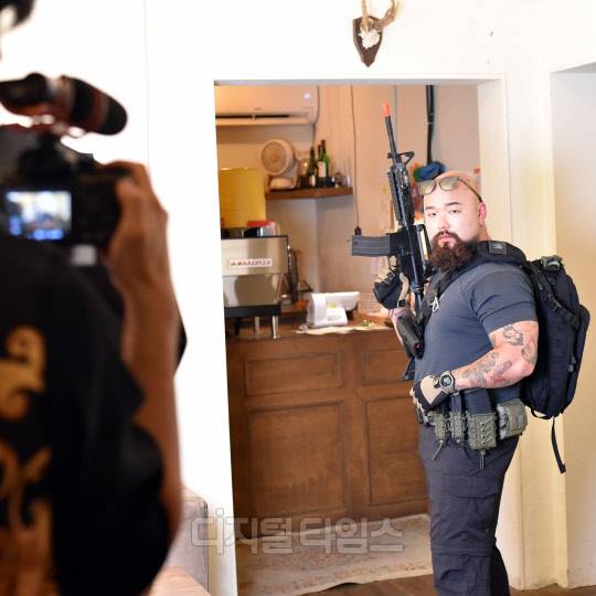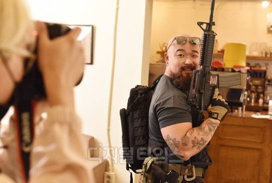 [포토]'가짜사나이' 야전삽 짱재 '맥심 촬영 중이에요~'