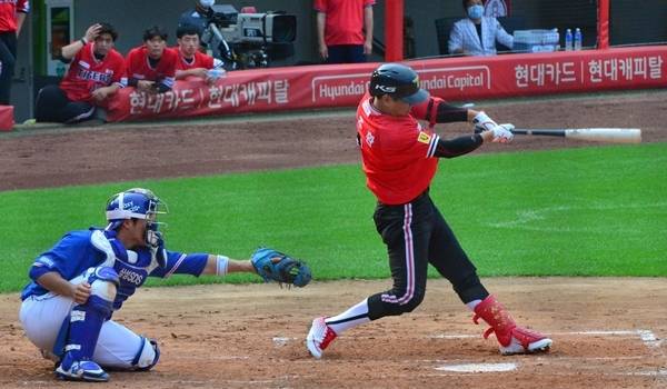 6회말 황재균의 2루타와 멜 로하스 주니어의 볼넷으로 1사 1, 2루를 만든 KT는 강백호의 중전 적시타로 1점을 더헀다.