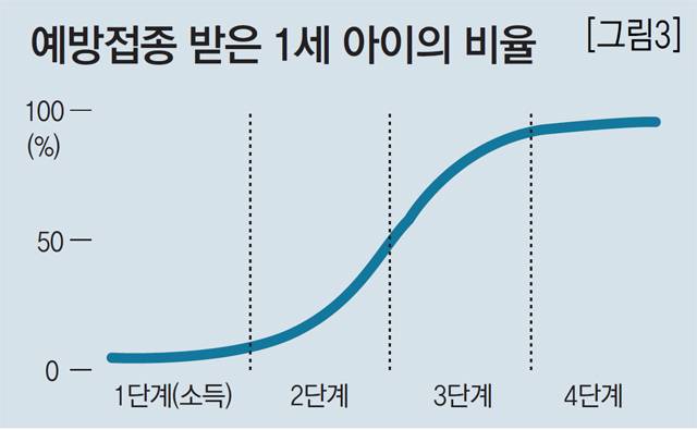 교통사고도 비슷한 모양을 나타냅니다. 차량 대수에 따라 1∼4단계로 나눴을 때 차가 가장 적은 1단계 나라는 교통사고도 적습니다. 2단계와 3단계에서는 일부는 걷고, 그 밖의 사람은 승합차, 오토바이, 자동차 등으로 다니기 시작해 교통사고가 급증하고 정점에 이릅니다. 그러다 차량이 가장 많은 4단계에서는 많은 사람들이 각자 차를 타고 다니고, 도로 및 교통 규제가 많아 교통사고가 줄어듭니다. 역시 낙타 혹 같은 그래프가 나오는 것이죠.