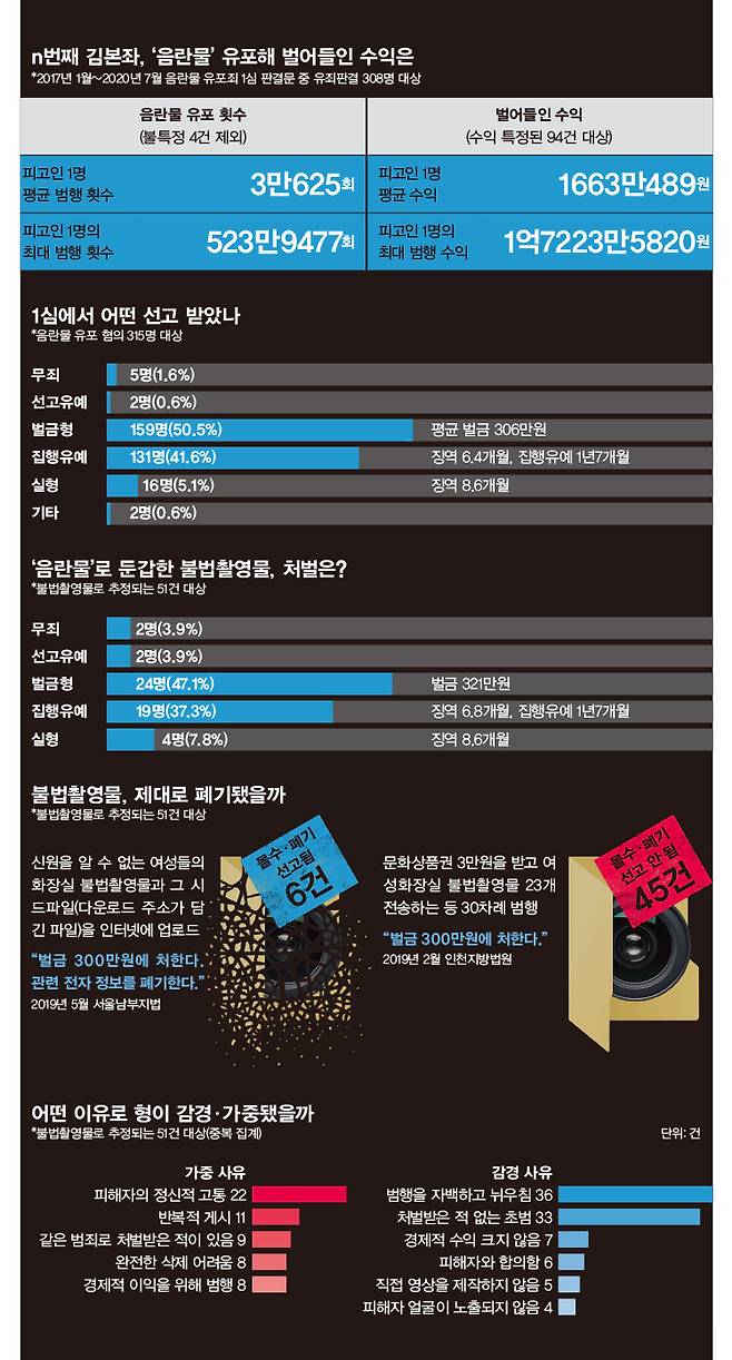 음란물 유포죄 1심 판결문 315건 입수·분석해보니 실형은 5% 그쳐