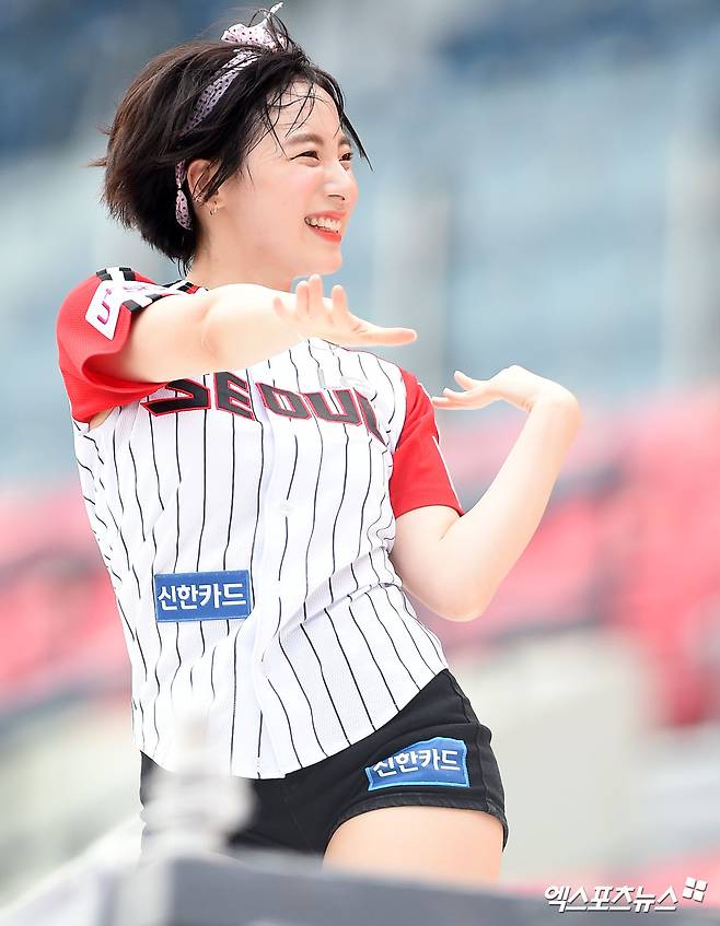 [엑스포츠뉴스 잠실, 김한준 기자] 19일 오후 서울 송파구 잠실야구장에서 열린 ‘2020 신한은행 SOL KBO리그’ 한화 이글스와 LG 트윈스의 경기, LG 치어리더 하지원이 멋진 공연을 선보이고 있다.
