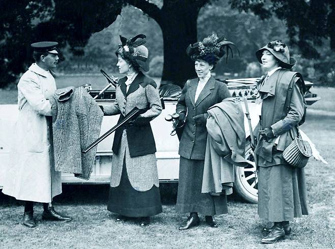 에드워디안 시대의 자동차들은 거의가 지붕이나 앞창이 없었기 때문에 자동차 운전에는 특수 의류가 필요했다. 얇은 천과 같은 직물 옷은 바람에 날려 풍선으로 변하기 때문에 드라이빙 드레스로 적당치 않았다. 대신 가죽으로 만든 타이트한 코트나 방수용 바바리 코트 등 특수 드라이빙 코트는 날씨와 추위로부터 보호하는 역할을 할뿐만 아니라 손목에 밀착되어 있어 바람이나 먼지가 들어오지 못해 승객들을 보호할 수 있었다. 여성의 경우 겨울에는 긴 모피 가죽 코트, 여름에는 먼지 침입 방지용 긴 린넨 또는 알파카 더스트 코트를 선호했다.