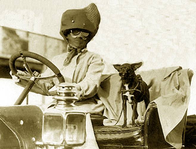 1900년대 에드워디안 시절-두꺼운 남여 운전복과 먼지막이 안경