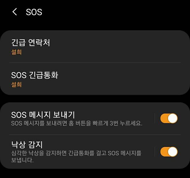 설정에 따라 사전에 등록한 연락처(최대 3개)로 바로 전화를 걸거나 메시지가 전송된다. “SOS 요청! 긴급 구조가 필요합니다.”라는 문자와 함께 현재 위치가 주소 및 경도·위도 정보를 포함한 구글 지도로 표시된다.