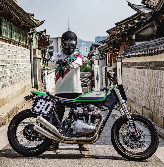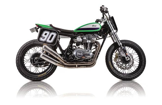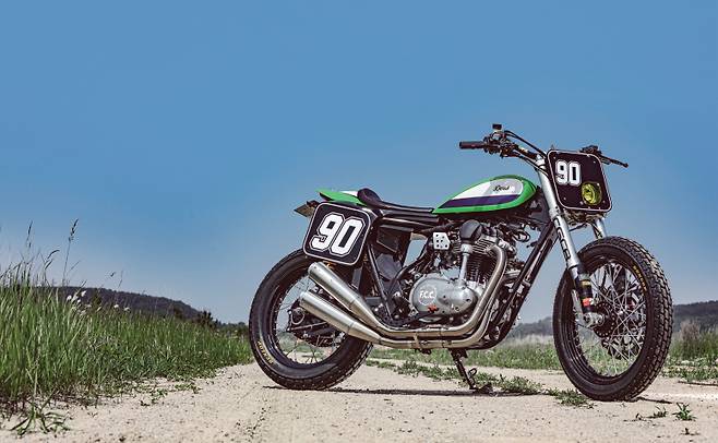 기존 연료탱크를 걷어내고 보다 콤팩트하고 클래식한 디자인의 연료탱크를 자체 제작했다. 연료탱크의 하단 라인이 시트를 이어 리어 카울까지 낮게 깔려 이어져 직선적인 느낌을 준다. 엔진은 내열 도장으로 멋스러움을 높였고 기존 에어 박스와 필터를 제거해 엔진 형태가 간결해졌다. 파워커맨더 PCV를 탑재하고 크레이지 개러지의 오리지널 2-2 머플러로 멋과 성능을 끌어올렸다. 끝으로 전후 던롭 K 180 타이어를 장착해 플랫 트래커 분위기를 완성했다.