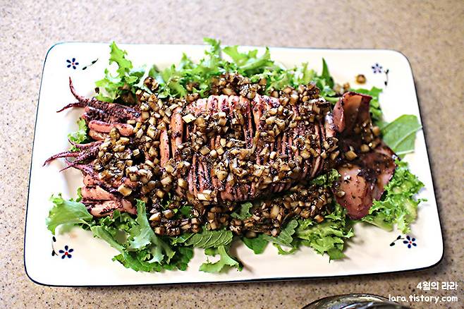 레몬즙과 마늘, 다진 양파가 입맛 돋우면서도 느끼함은 잡아주니 부담 없이 먹기 딱 좋아요.