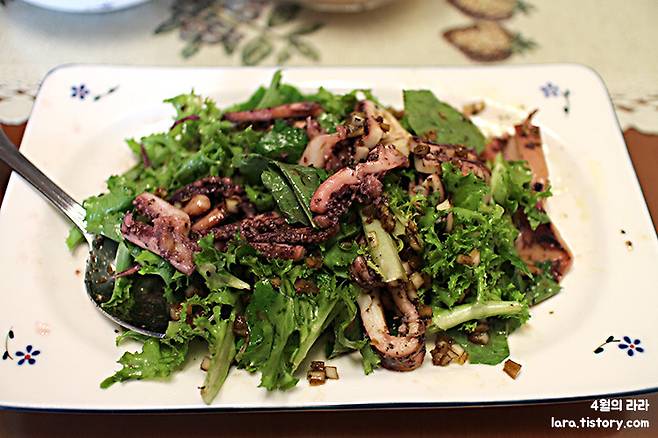 → 먹기 직전에 발사믹드레싱을 붓고 채소와 오징어를 잘 섞어 서빙한다.