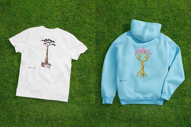 후디와 티셔츠의 문구는 “나무는 다른 시간의 메신저이다.