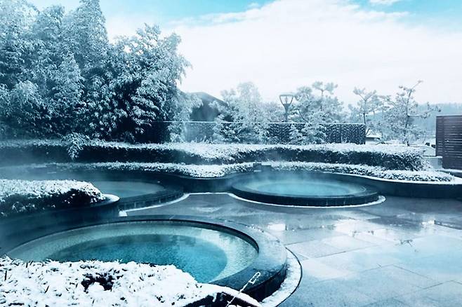 덕산온천은 주변이 산으로 둘러싸여 있어 맑은 공기와 한적한 분위기 속에서 온천을 즐길 수 있는 것이 특징입니다. 특히, 겨울철에는 눈 덮인 산과 함께 온천욕을 하면 마치 일본 온천 마을에 온 듯한 느낌을 받을 수 있습니다.