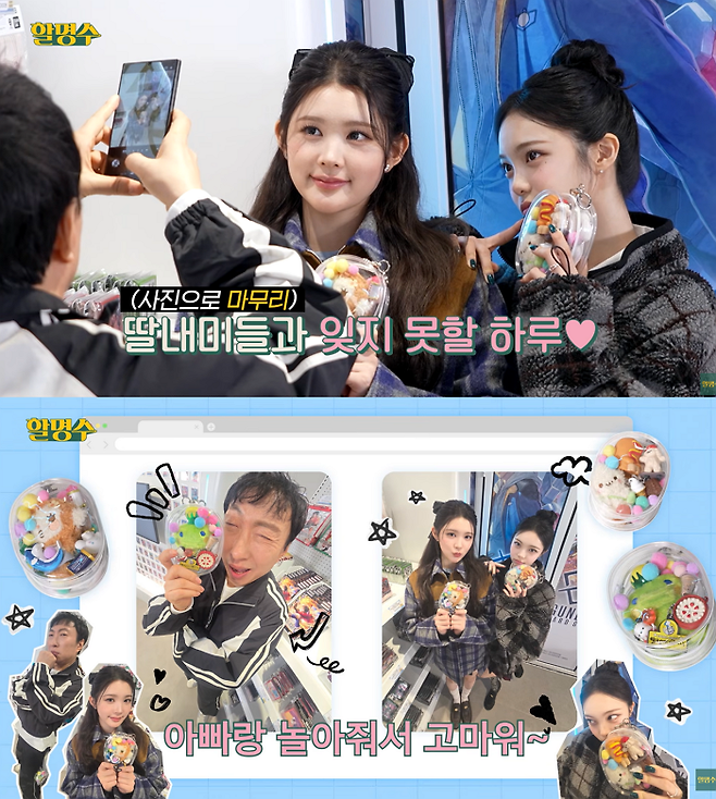 두 멤버는 박명수를 '명수 아빠'라고 부르며 스스럼없는 매력을 뽐냈다. 특히 에이나는 10초에 눈을 56번이나 깜빡이는 독보적인 개인기를 선보여 박명수를 경악케 했고, 이안은 입을 벌리고 '앙' 소리를 내는 윙크법을 전수하며 박명수의 숨겨진 애교 본능을 끌어냈다. 박명수는 "별로면 별로라고 얘기 해줘야 돼"라고 하면서도 딸들의 요청에 마지못해 윙크를 따라 하는 등 '츤데레' 아빠의 정석을 보여줬다.