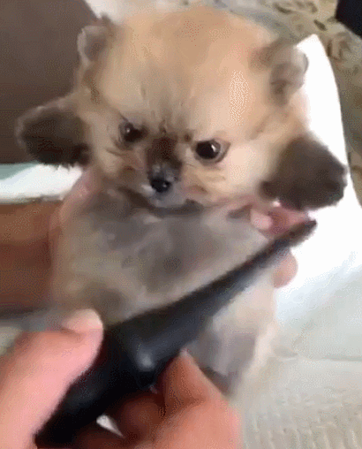 도망가고 싶은데 힘이 없는 아기 강아지.gif