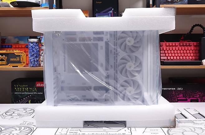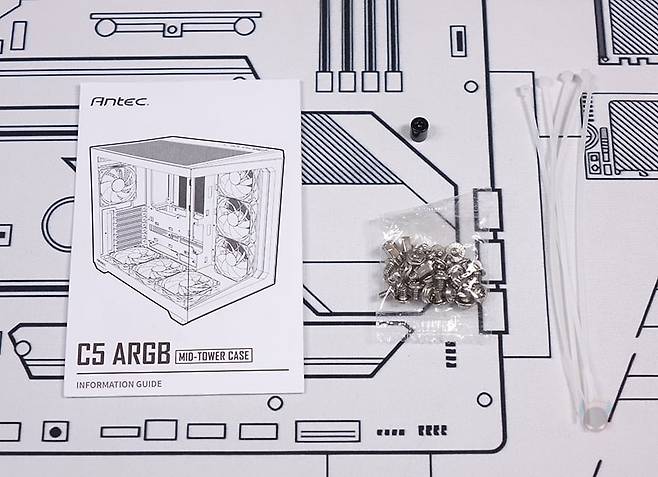 제품 포장은 Constellation 시리즈경우 지금까지 모든 모델에서 스티로폼보다 충격 완화효과가 좋은 우레탄-폼을 사용했듯이 C5 ARGB도 비닐포장과 함께 우레탄-폼을 사용했습니다. C5 ARGB PC케이스를 제외한 나머지 구성품들은 별도의 박스 포장을 제공해주며, 박스 안에는 제품설명서를 비롯해 부품 장착에 사용되는 각 종 나사들과 렌치, 소량의 케이블 타이를 제공해 줍니다.