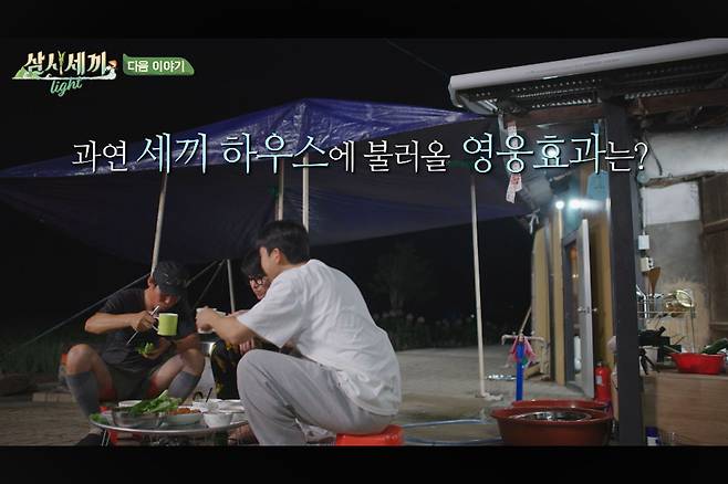 다음날 아침, 차승원과 유해진이 손님맞이에 분주한 모습을 보였고, 임영웅은 양손 가득 선물을 들고 등장해 세끼 하우스에 활기를 더했다.