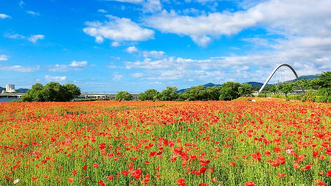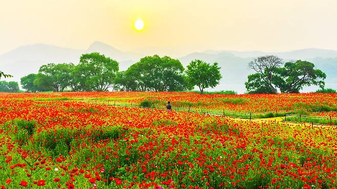 6월 초순부터 중순 사이, 이곳 초화단지는 가장 화려한 옷을 입는다. 바로 꽃양귀비의 계절이기 때문이다.