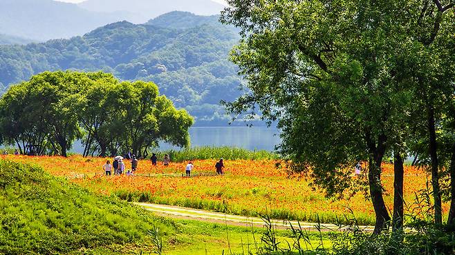 고요한 북한강 물결, 그 위로 놓인 뱃나들이교, 그리고 주변을 따라 길게 이어지는 산책로까지 이 모든 요소가 어우러져 완벽한 여름의 풍경을 완성한다.