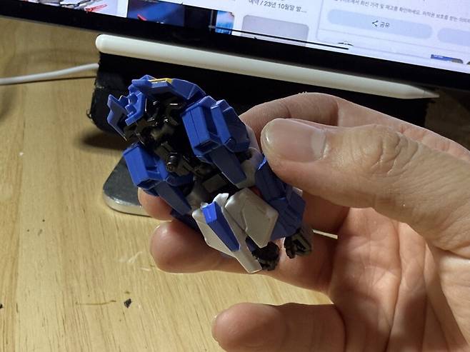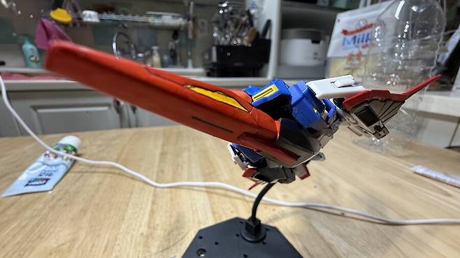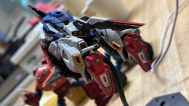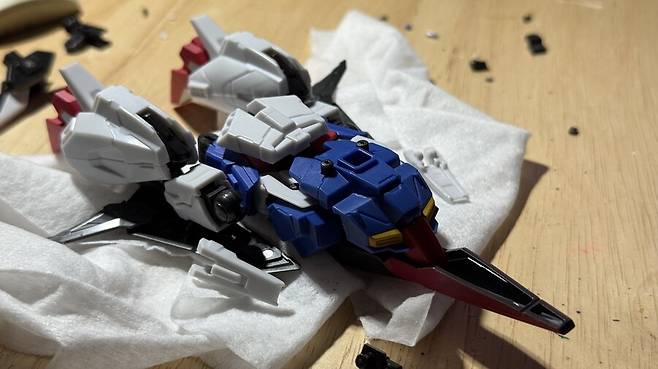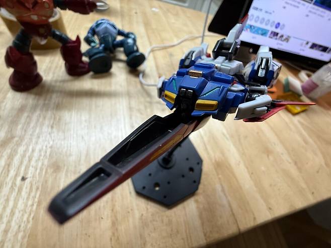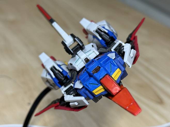 블루 부분에 순접이 흘러나와서 건담마커로 덮으려 했는데 마커자국이 더 지저분하게 나왔어요…