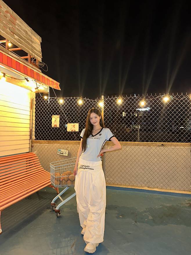 무난한 흰색 와이드 팬츠로 균형을 잡아주면 실패 없는 조합이 됩니다.