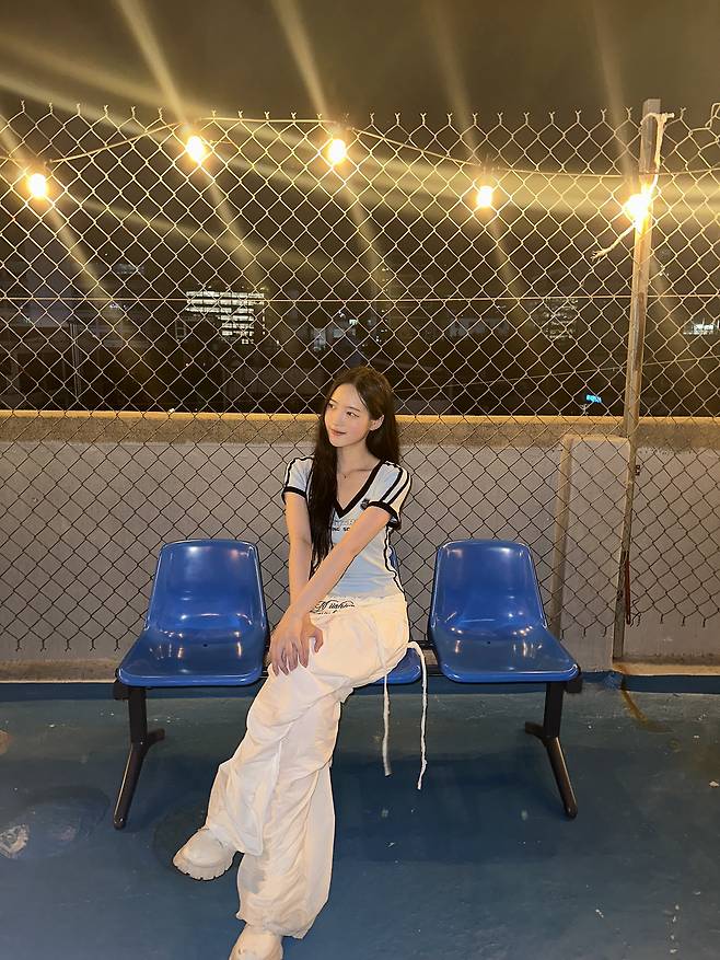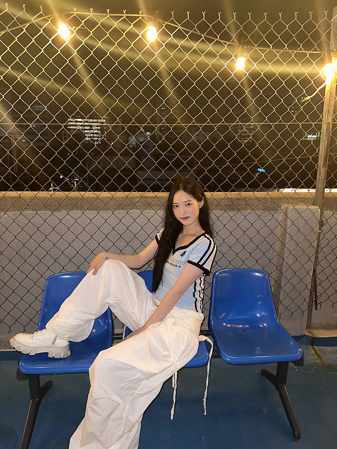 요즘처럼 공기가 선선한 날엔, 파스텔 컬러의 스포티 상의가 눈에 띄는 포인트예요.