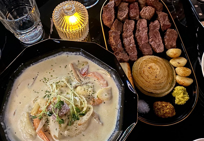 신사 가로수길에 위치한 '어슬렁'은 힙한 트렌디의 감성을 느낄 수 있는 위스키 바. 고급스러운 인테리어와 어둑한 분위기로 술이 술술 들어가는 곳이다. 무드가 뛰어난 곳이기에 데이트 장소로 선호도가 높다. 레스토랑을 방불케하는 음식 퀄리티와 페어링하기 좋은 위스키 한 잔을 곁들인다면 기억에 오래 남는 곳이 될 것.
