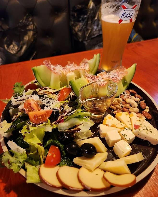 새우 문어 세비체 20,000원, 부라타 치즈 샐러드 21,000원, 멜론 프로슈토 보드 24,000원