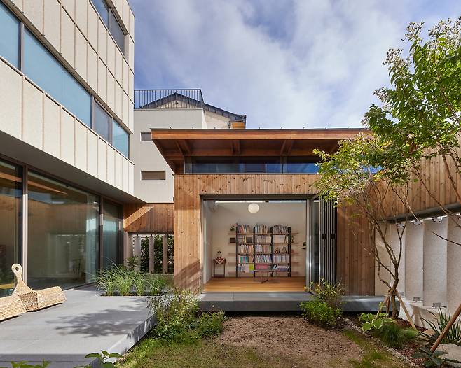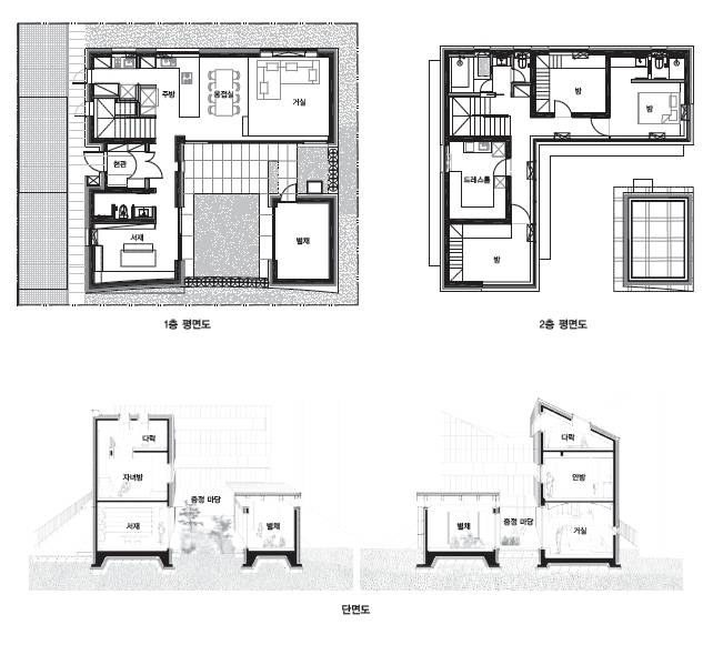 ‘별채’아파트는 거실, 주방, 침실 등 기능이 충실한 효율적인 주거 유형이다. 단점은 없지만 여지가 없는 아파트의 공간은 살아가는 데 필요한 장치에 가깝다. 가족들에게 평생의 삶의 배경이 될 집은기능만이 아닌 가족들의 기억을 담을 수 있는 여지의 공간이 필요하다. 윤슬재 마당 한 켠에 떨어져 있는 방은 기능이 없는 무명의 방이다.