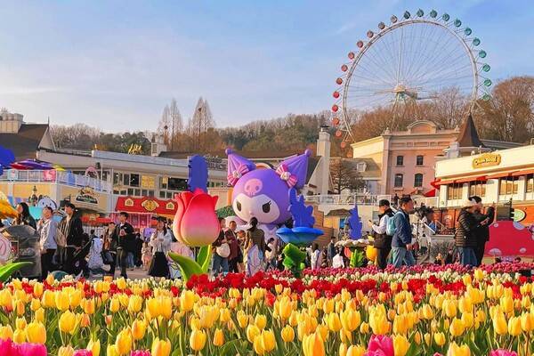 에버랜드의 대형 야외 정원인 '포시즌스 가득'은 사계절 다양한 꽃으로 꾸며지는 동화같은 공간입니다. 올해 에버랜드 튤립축제는 인기 캐릭터 '산리오'와 콜라보로 진행되어 아기자기한 분위기까지 더해졌습니다.