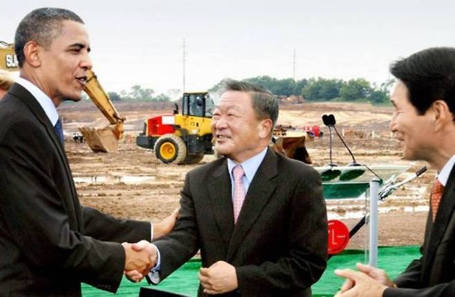 LG그룹 배터리의 '산파'는 고 구본무 명예회장이다. 구 회장은 1992년 영국에서 2차전지를 처음 접한 후 럭키금속(현 LS MnM)에 가져와 연구하도록 했고, 1995년 회장 취임 후 본격적으로 전지사업을 시작했다. LG화학은 1998년 국내 최초로 배터리 양산체제를 구축했고, 이듬해 청주공장에 월 100만셀 생산체계를 갖췄다. 2000년 전기차용 중대형전지에 개발했고, 2007년 현대자동차의 HEV 아반떼와 2009년 GM 볼트에 납품했다. 이렇듯 구본무 회장은 LG그룹의 배터리 사업을 글로벌 수준으로 일군 장본인이다.