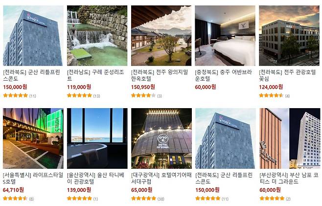 이 외에도 대구, 경남 진주, 전라북도 군산, 전주 등의 호텔도 특가에 이용할 수 있다.