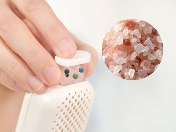 천연 탈취제 핑크 솔트가 포함된 구성입니다. 신발 건조기와 핑크 솔트 컨테이너, 사용 설명서가 있습니다. 신발 건조기는 가로 205㎜, 높이 318㎜로 부피를 많이 차지하지 않습니다.