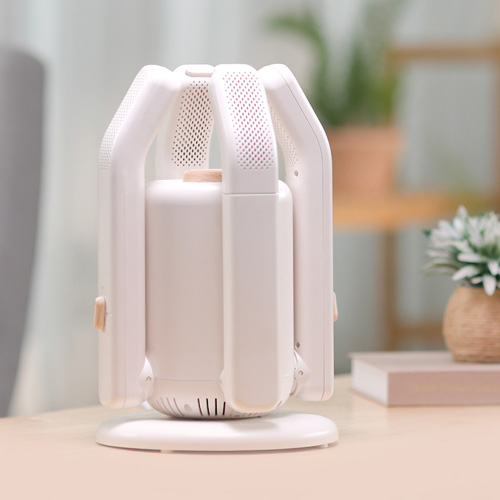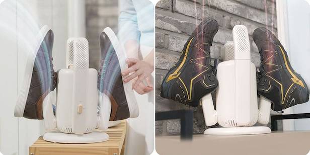 평평한 곳에 신발 건조기를 놓은 후 전원을 연결해 주세요. 건조봉에 신발을 거치하거나 확장봉을 신발 안에 넣은 다음 다이얼로 타이머(20~120분)를 설정할 수 있습니다.