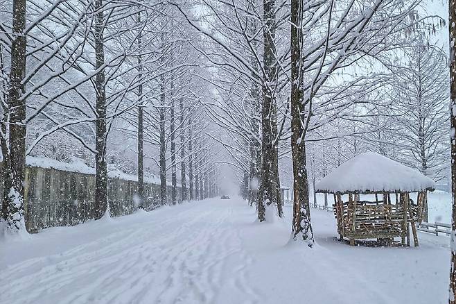 눈 내리는 날에는 낭만적인 풍경이 더해져 사진 찍기에 안성맞춤인 장소입니다. 특히, 남이섬의 자랑이라 할 수 있는 메타세쿼이아 길의 설경은 연인과 함께 겨울의 로맨틱한 분위기를 즐기기에 최고의 장소죠.
