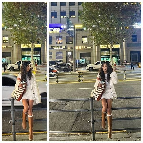 전 국가대표 테니스 선수이자 가수 윤종신의 아내인 전미라가 최근 SNS에 공개한 근황 사진으로 화제를 모으고 있다. 사진 속 전미라는 초미니 화이트 니트 드레스와 루즈핏 카디건, 브라운 롱부츠와 화이트 니삭스를 매치하여 클래식하면서도 트렌디한 감각을 뽐내고 있다.
