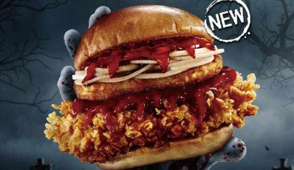KFC는 호러블한 콘셉트의 시즌 한정 메뉴 ‘블러디그레이비버거’를 출시했다. 빨간 블러디그레이비 소스를 활용한 제품으로, 블러디그레이비버거와 텐더, 코울슬로, 블러디그레이비 소스, 콜라로 구성된 팩과 딜리버리로 즐길 수 있는 신메뉴팩도 구성해 판매한다. 제조사는 중독적인 알싸한 매운맛과 특별한 비주얼을 메뉴의 주된 특징으로 꼽는다. 햄버거 단품 판매가는 6,300원이다.