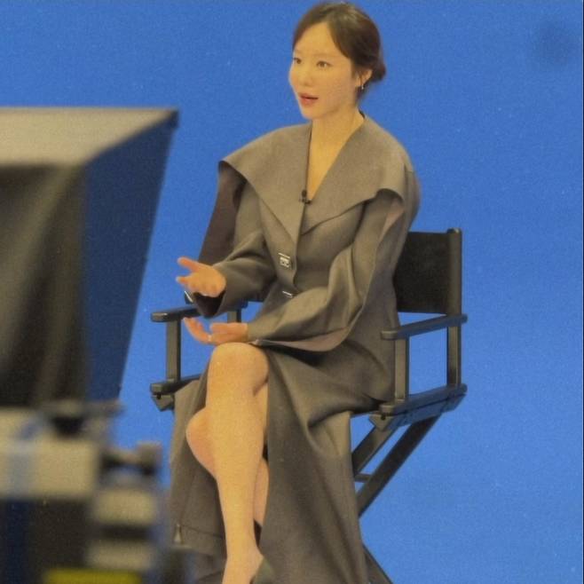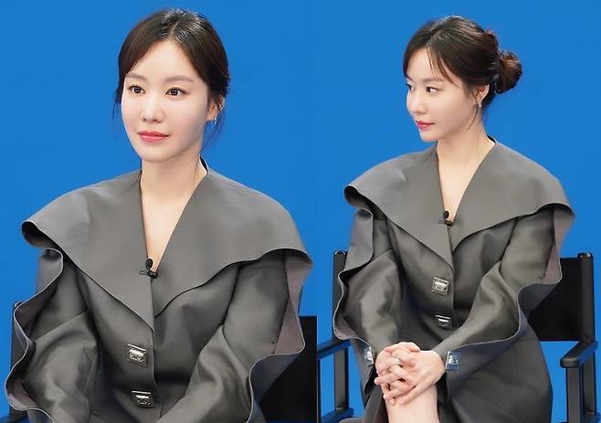 김아중은 망토를 두른 듯 휘날리는 회색 원피스를 착용해 우아하고 아름다운 자태를 자랑했습니다.